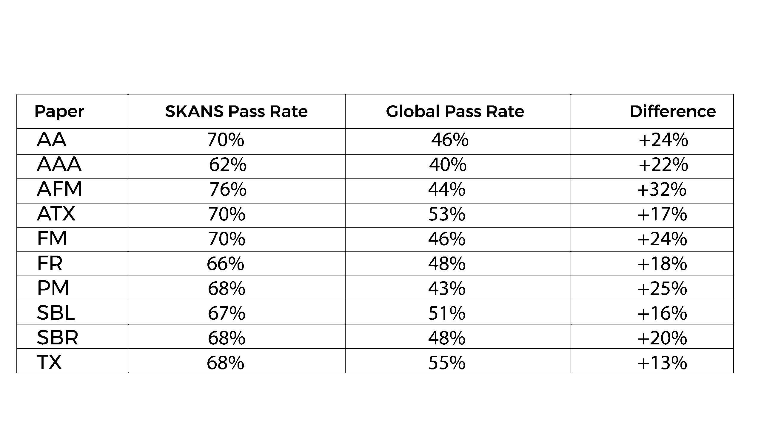 While global pass rates vary significantly from paper to paper, SKANS has maintained above 66% across all 10 subjects featured. That’s a rare level of consistency.